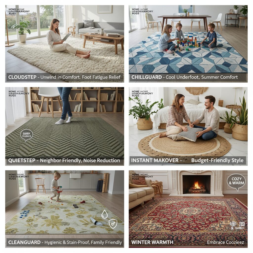 私たちの生活に寄り添うインテリアの中で、ラグは単なる床材の装飾品以上の存在価値を持っています。今回は、ラグがもたらす様々な恩恵について、機能性と経済性の観点から詳しく見ていきましょう。