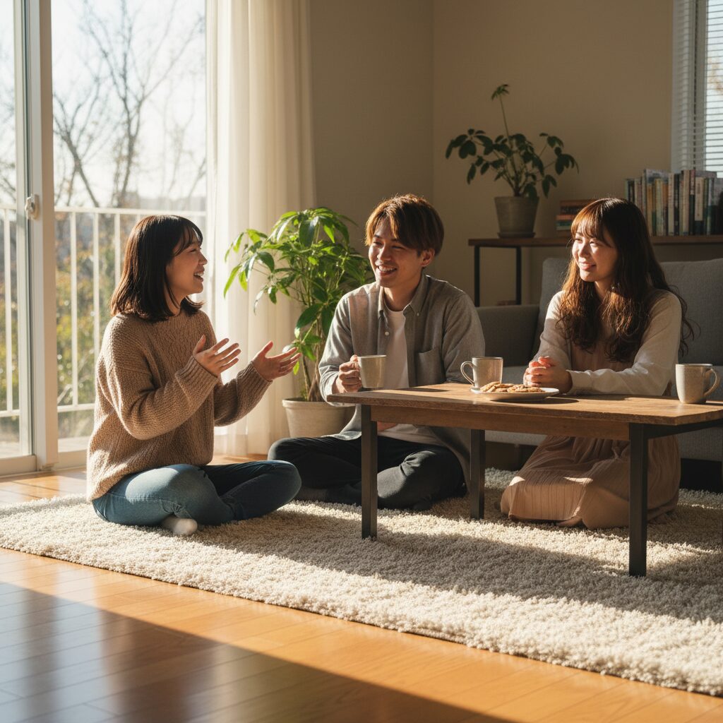 由香が「こういう時間、久しぶりです」と言った。彼女の声は静かで、でも確かに何かを伝えようとしていた。私は「またやろうね」と答えた。そして、それは社交辞令ではなかった。本当に、また集まりたいと思った。この場所で、このラグの上で、何度でも。