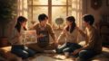 「お父さん、この漢字わからない」娘が夫に声をかけると、夫は新聞を脇に置いて娘の隣に移動します。二人が並んで宿題に向き合う姿を見ながら、私は幸せな気持ちで胸がいっぱいになります。こうした何気ない瞬間こそが、かけがえのない宝物なのだと実感します。ラグの上という限られた空間だからこそ、家族の距離が自然と近くなるのかもしれません。