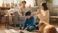 お母さんが紅茶のカップを置こうとして、少しだけテーブルを外してしまい、カップがラグの上にそっと着地した。一瞬の沈黙の後、「あ」と小さく声を上げる彼女に、お父さんが「ナイスキャッチ、ラグ」と声をかけた。誰も慌てず、ただ微笑んで、お母さんはカップを持ち上げてテーブルに置き直した。そんな小さなズレさえも、この家族の一部になっている。