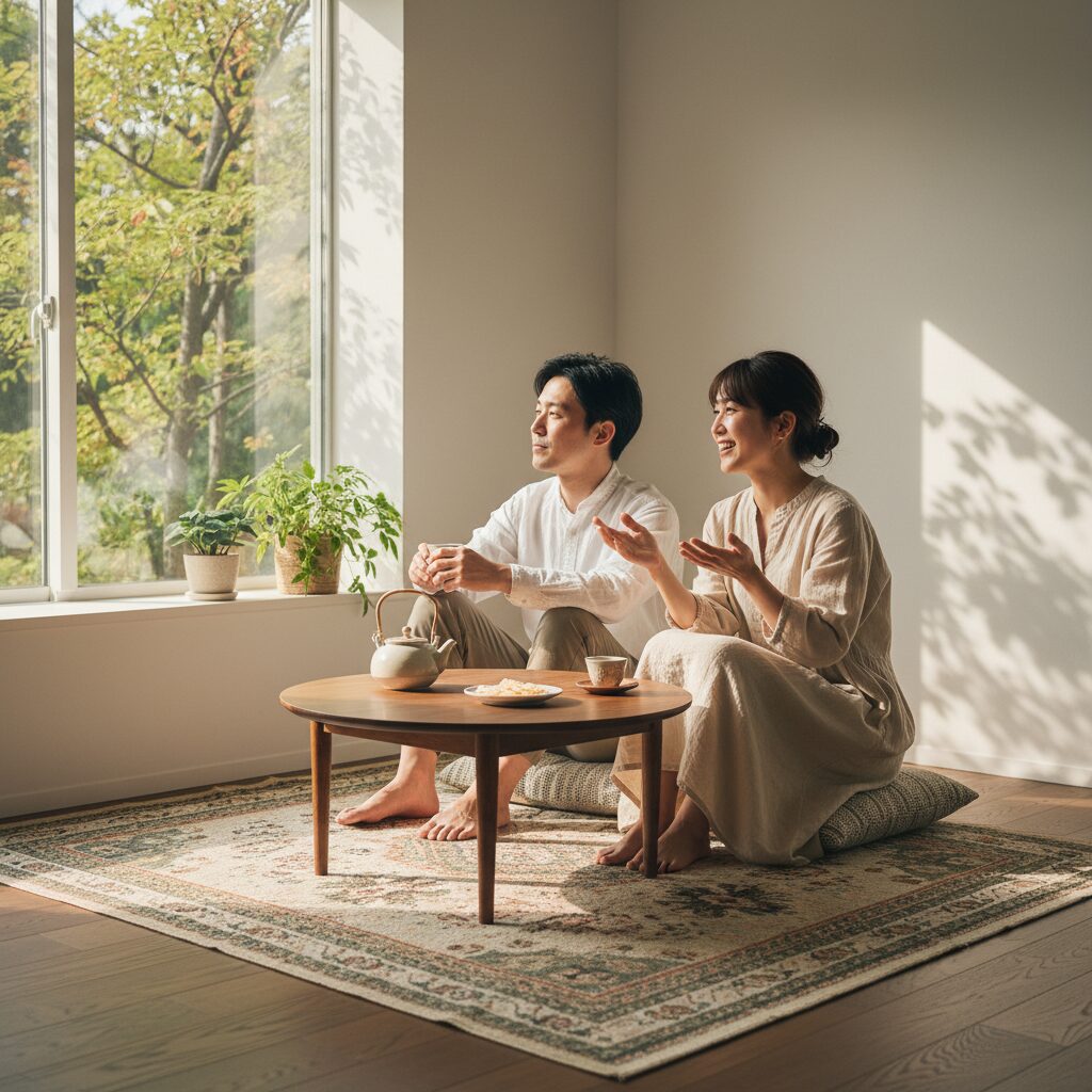 ラグの上で過ごす時間は、特別なイベントでもなんでもない。記念日でもないし、誰かに見せるためのものでもない。ただ二人でお茶を飲んで、他愛もない話をして、時々黙り込む。それが私たちの日常で、それ以上でもそれ以下でもない。