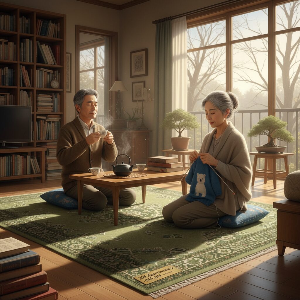 妻が編み物を膝の上に置き、紅茶を手に取った。彼女もゆっくりと飲んでいる。私たちは特に会話をするわけでもなく、ただ同じ空間にいる。それだけで十分だった。言葉にしなくても、互いの存在を感じられる。長い年月を共に過ごすということは、そういうことなのだろう。