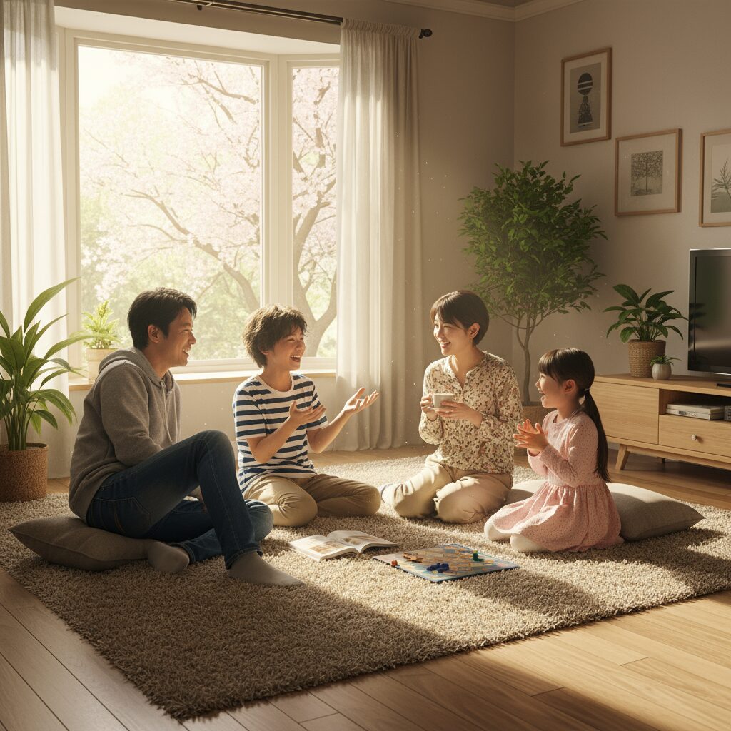 「ママ、おやつの時間だよ!」と美咲が声を上げます。妻がキッチンから温かいお茶とクッキーを持ってきて、私たちはラグの上で円になって座ります。子どもたちは、学校での友達との出来事や、将来の夢について話してくれます。私たち夫婦は、その話に相づちを打ちながら、時には助言を加えたりします。