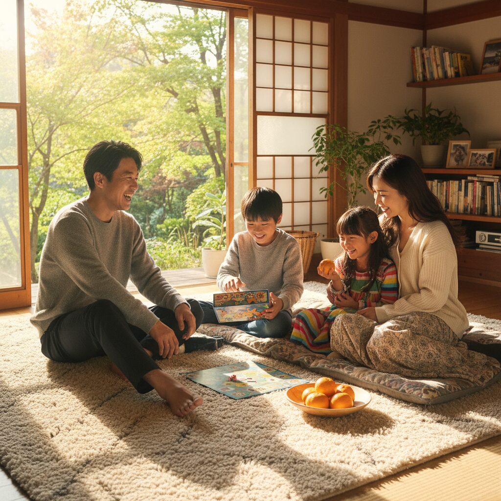 週末の午後、ラグの上で家族でボードゲームをすることもあります。すごろくやカードゲーム、時にはパズルを広げることも。ゆったりとした暖かさに包まれながら、笑い声が絶えない時間。勝ち負けよりも、一緒に楽しむことの喜びを、子どもたちは自然と学んでいるようです。