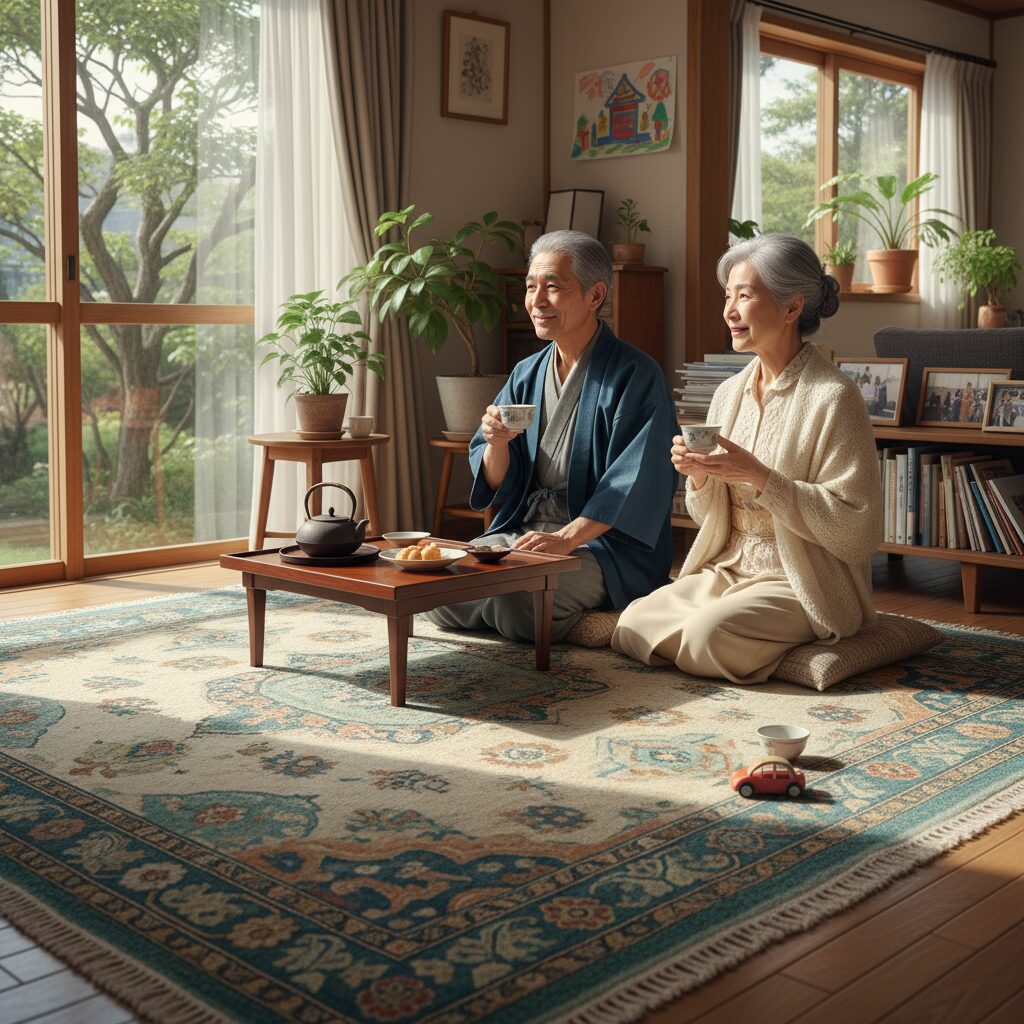 窓から差し込む柔らかな陽光が、リビングのラグに優しい影を落としていた。私たち夫婦が大切にしているのは、このラグの上でゆっくりとお茶を飲みながら過ごす午後のひととき。結婚して45年、互いの存在が当たり前になった今でも、この時間だけは特別な魔法がかかったように感じる。