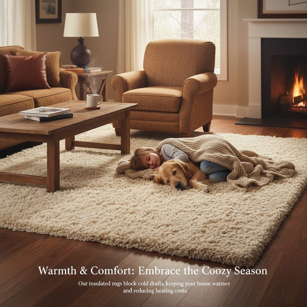 まず、ラグの最も基本的な機能として挙げられるのが、断熱効果です。床からの冷気を遮断することで、室温の調整をサポートしてくれます。特に冬場は、床からの寒気を防ぐことで暖房効率が向上し、エネルギー消費を抑える効果が期待できます。これは単なる快適性の向上だけでなく、光熱費の削減にもつながる重要なポイントです。