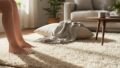 うちのラグは毛足が長めで、触るとふわっとしてる。最初は「汚れたらどうしよう」とか「掃除大変そう」とか考えてたんだけど、実際に敷いてみたら、そんなこと気にならなくなった。土曜の昼下がり、特に予定もなくて、二人で床に寝転がってる。彼は本を読んでて、私はぼーっと天井を見てる。会話なんてほとんどない。