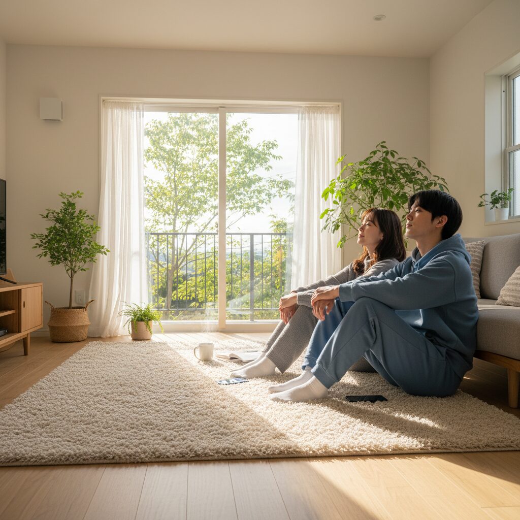 夢の話をしたことがある。「将来どんな家に住みたい?」って聞かれて、正直あんまり具体的なイメージはなかった。広いリビングとか、おしゃれなキッチンとか、そういうのはあればいいけど、別になくてもいい。でも「こういうふうに、二人でのんびり過ごせる場所がいい」とは思った。ラグがあって、窓があって、光が入ってくる部屋。それだけでいい。
