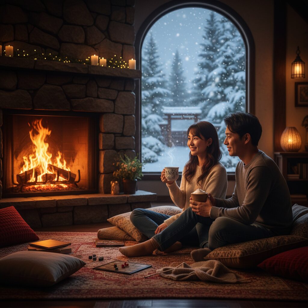 暖炉の火はまだ強く燃えている。薪を足す必要はなさそうだった。ただ、このまま時間が止まればいいのに、と思う。こういう瞬間は長く続かないことを、私たちはどこかで知っている。だからこそ、今ここにある静けさが愛おしく感じられるのかもしれない。