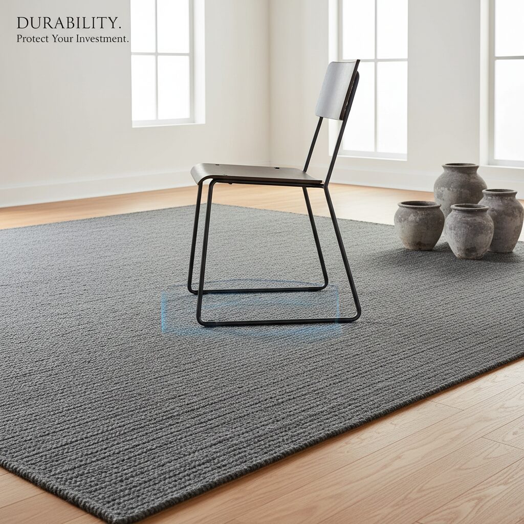 ラグには、多くの人が想像する以上に多様な機能が備わっている。まず挙げられるのが、床の保護だ。椅子を引きずったり、重い家具を置いたりすることで、フローリングには細かな傷が蓄積していく。それを防ぐ緩衝材としての役割は、意外と見過ごされがちかもしれない。特に賃貸住宅に住んでいる人にとっては、退去時の原状回復費用を抑えるという実利的な意味でも、ラグは有効な選択肢となる。