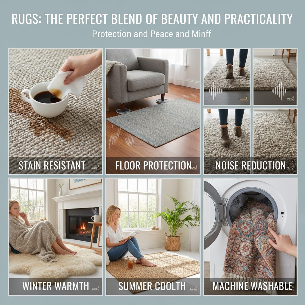 住まいの印象を大きく左右するインテリアアイテムとして、ラグは多くの家庭で愛用されています。単なる装飾品と思われがちですが、実は暮らしの質を高める多彩な機能を備えた実用的なアイテムなのです。床に敷くだけで空間の雰囲気を一変させるラグは、見た目の美しさだけでなく、日常生活における様々な役割を果たしています。